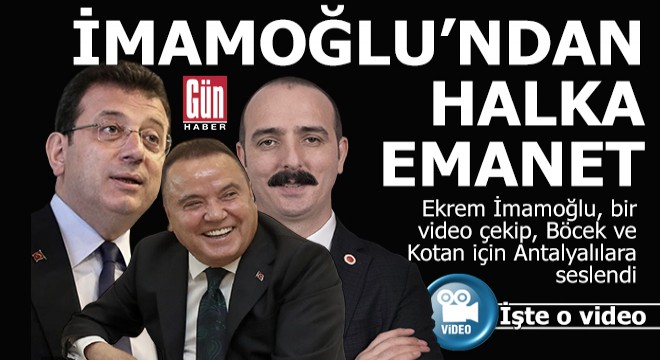 Cem Kotan’ın ziyaret ettiği sırada çekilen videoda İmamoğlu, “Cem Kotan başkanım Antalya’nın selamını getirdi. Antalya’da Muhittin Böcek başkanımızın, Konyaaltı’nda da Cem Kotan başkanımızın yanındayız” şeklinde konuştu.