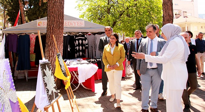 Konuşmaların ardından Kaymakam Bayram Gale ve protokol üyeleri, kursiyerlerin ürünlerinin yer aldığı stantları gezerek, başta biçki- dikiş ve el sanatları olmak üzere sergilenen eserleri inceledi.