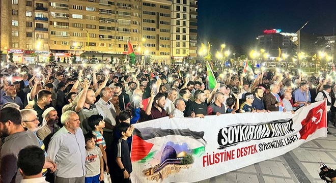 İzzetpaşa Camii’nde kılınan akşam namazının ardından El Aksa platformu öncülüğünde toplanan yüzlerce kişi, İsrail’in Gazze’deki saldırılarını etti. Türk ve Filistin bayraklarıyla meşaleler yakan grup, İsrail ve ABD aleyhine sloganlar atarak Gazi Caddesi’nden Cumhuriyet Meydanı’na doğru yürüyüş düzenledi. Hafız Mahmut Özeren’in Kur’an-ı Kerim tilaveti okumasıyla başlayan eylemde meydandaki yüzlerce kişi, serilen hasırlar üzerinde yatsı namazını kıldı. Platform adına açıklamalarda bulunan Dr. Fatih Ertaş, saldırıların 8 aydır sürdüğünü belirterek, “Ümmetin şerefini kurtaran o yiğit halk ve mücahitler, hepimiz adına sürdürdükleri muhteşem direnişle, insanlık için tehdit olan siyonizmin vahşi yüzünü, emperyalizme maske kılınmış Batı değerleri makyajının sahteliğini, yeryüzünde egemen olan küresel düzenin adaletsizliğini, İslam ümmetinin içerisinde bulunduğu dağınıklık ve zilletin boyutlarını bütün çıplaklığıyla ortaya çıkardılar” dedi. (DHA)
