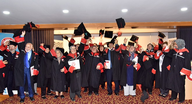 Eğitmenlerin hazırladığı 'Emekli Bilgeler Üniversitesi Ders Notları' kitabı tüm katılımcılara hediye edildiği mezuniyet töreni, duygusal anlara sahne oldu.