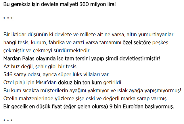 Sözcü Gazetesi Yazarı Emin Çölaşan, bir süre önce borcuna karşılık Halkbank'a geçen Mardan Palace Oteli'ni yazdı
