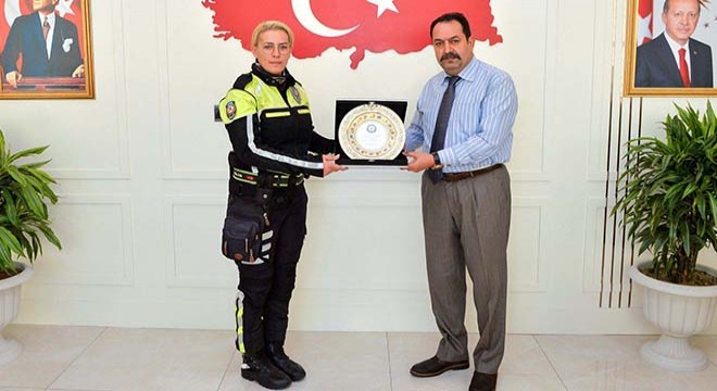 İl Emniyet Müdürü İlker Arslan, Emniyet Müdürlüğü Trafik Denetleme Şube Müdürlüğü'ne bağlı Şahin Timlerinde görev yapan polis memuru Elçin Arıkan'ı gayretli ve özverili çalışmaları dolayısıyla tebrik etti. İl Emniyet Müdürü Arslan, polis memuru Arıkan'a teşekkür ederek, plaket verdi. İl Emniyet Müdürü İlker Arslan, suç ve suçluyla mücadele ederken kamu güvenliğini sağlama görevini yerine getiren polis teşkilatının, vatandaş odaklı hizmet anlayışını benimsediğini belirtti. Türk Polis Teşkilatı'nın disiplinli ve kararlı çalışmalarının yanı sıra görev sırasında vatandaşlara karşı şefkatli bir tutum sergilemesinin önemini vurgulayan Arslan, teşkilatın tüm kademe ve rütbelerindeki personelin güçlü bir aile olduğunun altını çizdi.