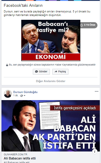 Facebook uygulaması olan anımsatmanın yaşattığı bir başka tesadüf ise aynı gün dönemin Merkez Bankası başkanın görevden alınacağı söylentilerinin çıkması…