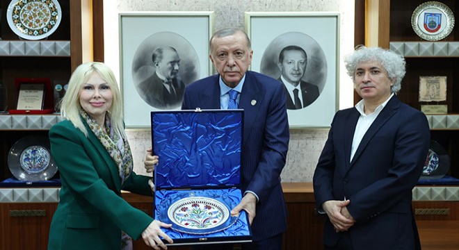 Rektör Prof. Dr. Özlenen Özkan ve Prof. Dr. Ömer Özkan, Cumhurbaşkanı Recep Tayyip Erdoğan’a günün önemine ilişkin hediye takdim ederek ziyaretlerinden dolayı şükranlarını sundu.