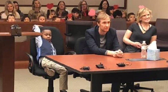 ABD’nin Michigan eyaletindeki Kent Yerel Mahkemesi’nin Facebook üzerinden paylaştığı fotoğrafta, Michael isimli beş yaşındaki çocuğun evlat edinme duruşmasında yeni ebeveynlerinin yanında oturduğu ve arkasında da duruşmaya davet ettiği anasınıfı arkadaşlarının ellerinde kağıttan yaptıkları kalplerle duruşmayı izledikleri görüldü.