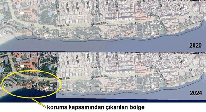 Antalya'da oluşumu milyonlarca yıl önceye dayanan ve kentin simgeleri arasında yer alan falezler, yaklaşık 13 kilometre uzunluğunda. Muratpaşa ile Konyaaltı ilçeleri arasında bulunan falezler, 2020 yılında bakanlık kararı ile 'Doğal Sit-Nitelikli Doğal Koruma Alanı' olarak tescil edildi. Ancak geçen 7 Eylül'de Resmi Gazete'de yayımlanan 8949 sayılı karara göre, falezlerin bir kısmı 'Kesin Korunacak Hassas Alan' olmaktan çıkarıldı. Kararda yayımlanan haritaya göre Muratpaşa ilçesi Konyaaltı Caddesi üzerinde bulunan ve Konyaaltı Sahili'ne inen varyatın olduğu alanın korunacak alandan çıkarıldığı görüldü.