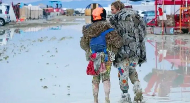 3 ayda yağması beklenen yağış 2 günde yağınca festivalin düzenlendiği Black Rock Çölü'nün zeminini çamur birikintisine dönüştürdü, bu nedenle binlerce kişi mahsur kaldı.