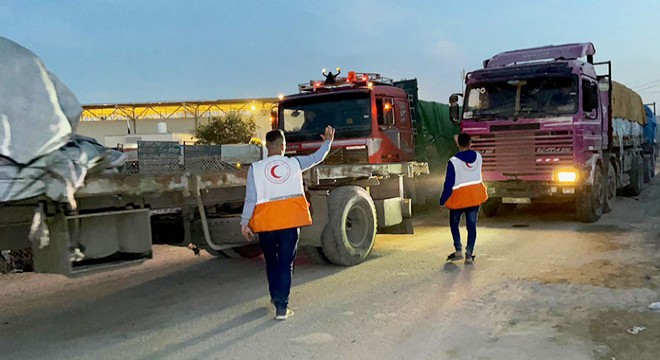 PRCS, insani yardım yüklü 100 kamyonla ilgili olarak yaptığı açıklama, “Filistin Kızılayı ekipleri dün Refah kapısından 100 yardım tırını teslim aldı. Kamyonlarda yiyecek, su, yardım malzemesi, tıbbi malzeme ve ilaçlar bulunuyor. 21 Ekim 2023'ten bu yana toplam 3 bin 499 kamyon teslim alındı” ifadelerini kullandı.