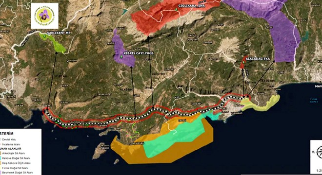 Diğer yandan Kekova, Myra, Andriake gibi 11 arkeolojik alan, Kaş-Kekova Özel Çevre Koruma Bölgesi ve Kaputaş 1'inci Derece Doğal Sit Alanı dahil olmak üzere toplam 9 doğal koruma alanının ya içinden ya da yakınından teğet geçeceği belirtilen bölünmüş yol projesine karşı çıkan çevre örgütleri, projenin iptalini istiyor. Kaş Kültür ve Çevre Derneği Başkanı Ahmet Akoy, projenin kıymetli tarım topraklarının olduğu üretim alanlarından, hayvancılık ve çiftçilikle geçinen dağ köylerinden, halkın ata toprakları ve evlerinin üzerinden geçerek, doğal ve sosyal hayatı bıçak gibi ikiye böleceğini söyledi.