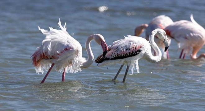 Tüm Türkiye'yi etkisi altına alan aşırı soğuk, yaban hayatını da olumsuz etkiledi. Türkiye'nin önemli göllerinden biri olan Eğirdir Gölü'nde kışlamayı sürdüren flamingolar, aşırı soğuklardan etkilendi. Hava sıcaklığının yer yer eksi 10 dereceye kadar düştüğü Isparta'da, gölde kışlayan flamingoların vücutlarında buz sarkıtları oluştu. Bölgedeki flamingoları görüntülemek için dün sabah göle giden fotoğraf sanatçıları Mustafa Dinç, Murat Atabay ve Levent Pekmezcan'ın çektikleri karelerde; gölde beslenen flamingoların vücutlarının suyla temas eden noktalarında oluşan buz sarkıtları dikkati çekti. Kış mevsimini gölün Hoyran mevkisinde geçiren flamingoları gözlemleyen fotoğraf sanatçıları, hayvanların vücutlarındaki buz sarkıtlarını görünce şaşkınlık yaşadı. Flamingoların buz sarkıtlarına rağmen beslenmeyi sürdürdüğü görüldü.