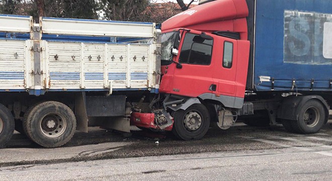 Dinar ilçe merkezindeki Hastane Kavşağı'nda freni boşalan Ali Ügü'nün (47) kullandığı TNA 062 çekici, TJV 921- 1587 R dorse plakalı TIR, Halil İbrahim Arı'ya ait 03 FD 841 plakalı kamyona arkadan çaparak durabildi. İhbar üzerine olay yerine trafik polisleri, itfaiye ve sağlık ekipleri yönlendirildi. Kazayı hafif yaralı atlatan TIR sürücüsü Ali Ügü'ye sağlık ekipleri müdahaleyi ambulansta yaptı. Trafik polisleri de başka kaza yaşanmaması için önlem aldı.