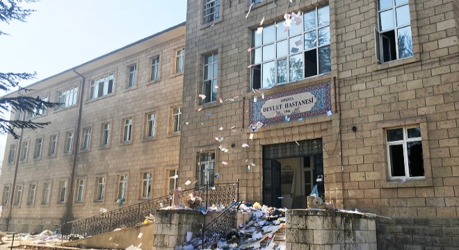 Eski hastane binası içerisinde işe yaramaz diye bırakılan yatak, yastık, battaniye, tıbbi malzeme, kırtasiye malzemeleri, arşiv dosyaları, sıhhi tesisat malzemeleri gibi çok miktarda eşya bulunuyor. Yaklaşık 10 kişilik ekip ağız ve burunlarını maskeyle kapatarak bina içerisinde bulunan malzemeleri toplayarak hastane binasının camından bahçeye atarak temizlik işine başladı. Aşağıda toplanan malzemelerin daha sonra kamyonlarla buradan alınarak imha edilmek üzere başka bir yere taşınacağı belirtildi.