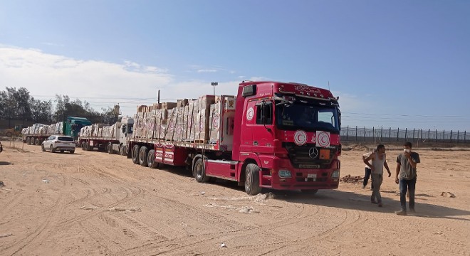 Filistin Kızılayı’ndan yapılan açıklamada, “Filistin Kızılay ekipleri bugün Refah sınır kapısından insani yardım yüklü 59 kamyonu teslim aldı. Bu kamyonlardan 4'ü Uluslararası Kızılhaç Komitesi'ne, 55'i ise Mısır Kızılayı'ndan Filistin Kızılayı'na teslim edildi. Kamyonlarda gıda, ilaç, yardım malzemesi ve tıbbi malzeme bulunmaktadır. Şu ana kadar teslim alınan kamyonların toplam sayısı 217'ye ulaşırken, şu ana kadar yakıt girişine izin verilmedi” denildi.