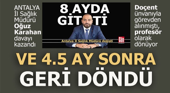 Karahan’ın açtığı göreve iade davasını kazandığı ve yarın (Salı) Alanya’dan Antalya’ya gelerek göreve başlayacağı öğrenildi.