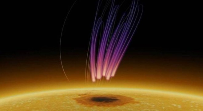 Çarpıcı manzara, bir Güneş lekesinin 40 bin kilometre üzerinde ortaya çıktı. Güneş'te manyetik kuvvetin çok yoğun olduğu ve bir miktar ısının yıldızın yüzeyine ulaşmasının engellendiği bölgelere Güneş lekesi adı veriliyor.