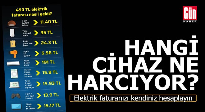 Misal haftanın her günü 8-10 saat kombi çalışmasının elektrik tüketim maliyeti 35 TL, eğer ısınmak için klima kullanıyorsanız her gün 8 saat klima çalışması faturaya 191 TL olarak yansıyor. Haftada 4 gün saç kurutma makinesi kullanırsanız elektrik faturanıza 5.56 TL olarak yansıyor. Kışın vazgeçilmezi tabii ki kestane değil mi! Haftada 2 kez fırında kestane yapmanın elektrik faturası maliyeti 11.40 TL. Hangi elektrikli alet ne kadar elektrik harcıyor, işte kalem kalem hesap…