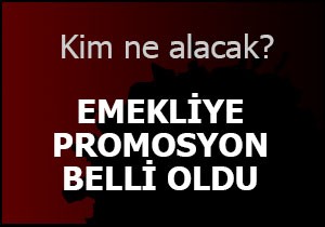 1000 TL altında emekli maaşı alanlara 300, 1000-2000 TL arası emekli maaşı alanlara 375, 2 bin TL üzeri maaş alanlar 450 lira emekli promosyonu alacak.