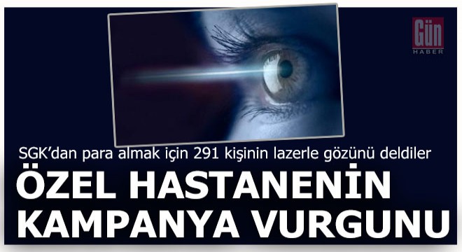 Soruşturmada hastane sahibi ve doktorlar da dahil 13 şüpheli var. Şüpheliler "Zincirleme şekilde nitelikli dolandırıcılık", "Resmi belgede sahtecilik" ve "Vücut bütünlüğüne zarar vermek"le suçlanıyor. İddiaya göre; şüpheliler "Genel göz taraması ve kampanya var" diyerek mağdurları hastaneye çekti. Sağlıklı olan gözlerine, rızaları dışında lazer tedavisi uygulayıp delik açtı. Tedavi sonrasında mağdurların gözlerinde yanma, yaşarma, eskisi gibi uzağı ve yakını görememe sorunları belirdi. 291 mağdurun gözünde hasar kaldı. İşlemler hastane yönetimi tarafından faturalandırıldı.