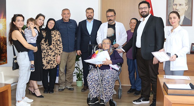 Başhekim Op. Dr. Ali Ergül hayırsever aileye çiçek ve teşekkür belgesi verdi.