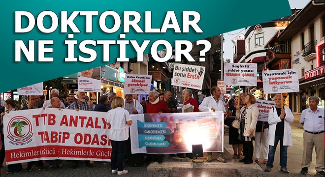 Kalekapısı Meydanı Attalos Heykeli önünde toplanan Antalya Tabip Odası üyesi hekimler, mecliste görüşülen sağlıkta şiddet ile ilgili yasa taslağına tepki gösterdi. Yasanın Türk Tabipler Birliği'nin önerisiyle ilgisi olmadığını, bir caydırıcılık getirmediğini belirten hekimler, oturma eylemi yaptı.
