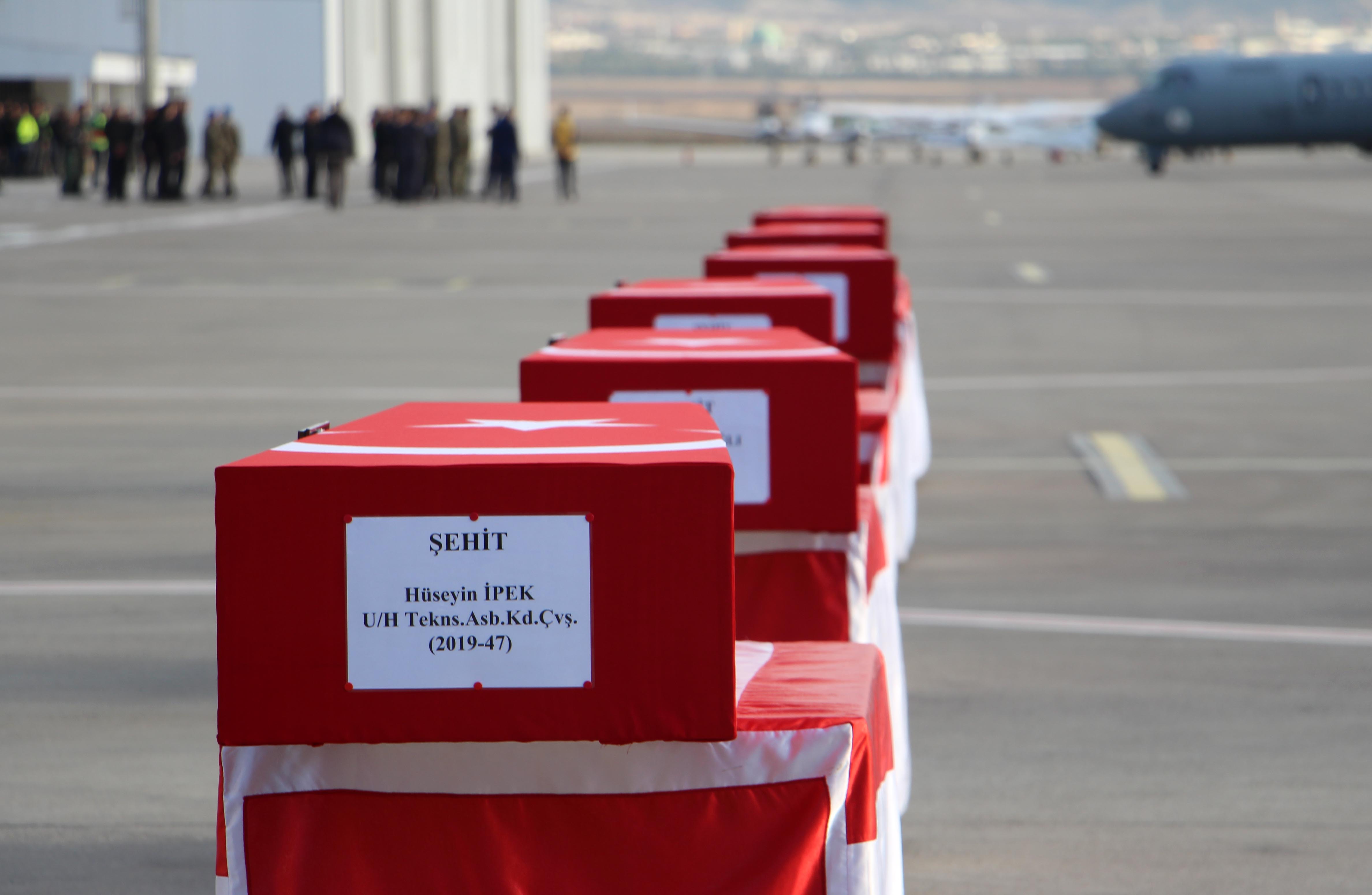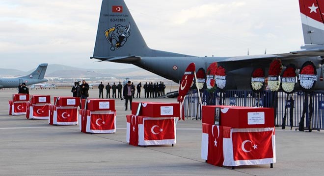 Şehitlerin bayrağa sarılı tabutları, askerlerin omuzunda uçaklara konulup memleketlerine uğurlandı. Askeri personelin selamladığı uçaklar, saat 10.20'de Isparta'dan havalandı.