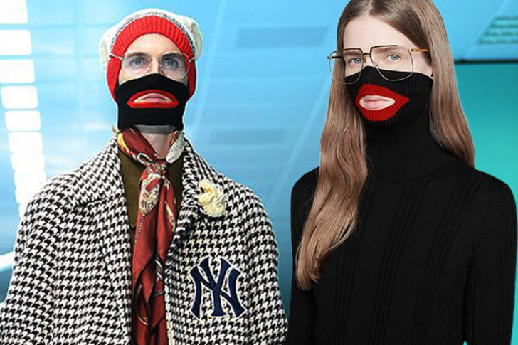 Gucci'nin son tasarımı, yüzün alt kısmını kapayan ve ağız kısmı açık olan siyah kazak-balaklava (kar maskesi) karışımıydı.