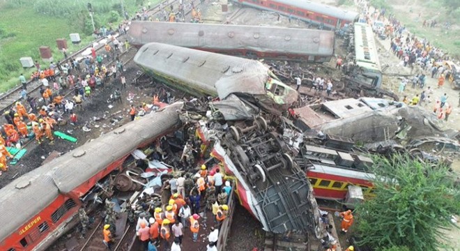 Eyaletin Balasore bölgesinde Bahanaga Bazar Tren İstasyonu yakınlarında, 2'si yolcu 1’i yük olmak üzere 3 trenin karıştığı, dün yerel saatle 19.20'de meydana gelen kazada 233 kişi hayatını kaybetti, 900'den fazla kişi yaralandı.