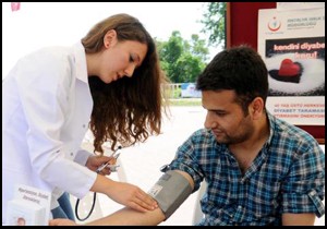 Genç Yeryüzü Doktorları Akdeniz Gönüllüsü Feyza Betül Genç, akşama kadar sürecek etkinlikte yaklaşık 3 bin kişiyle iletişime geçmeyi ve tansiyonlarını ölçmeyi hedeflediklerini söyledi. Tansiyonun normal değerlerini aşması halinde insan sağlığını riske edecek sonuçların ortaya çıkacağını söyleyen Feyza Betül Genç, “Sağlığı tehdit eden hipertansiyon, görme bozukluğu, beyin kanaması, felç ve böbrek yetmezliği gibi sorunlara neden oluyor. Vatandaşlarımızı bilgilendirmek adına böyle bir organizasyona imza atıldı" dedi.
