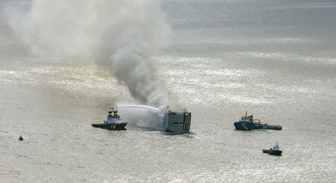 Dün Hollanda Sahil Güvenliği, ülkenin Ameland Adası’nın 27 kilometre açıklarında seyreden Panama bandıralı Fremantle Highway kargo gemisinde yangın çıktığına dair gece yarısı civarında ihbar aldı. Çeşitli yelkenli birimler ve Deniz Olaylarına Müdahale Grubu (MIRG) alarma geçirildi. Yangını söndürmeye çalışan ancak başarılı olamayan 23 mürettebatın tamamı helikopter ve can kurtarma botlarıyla tahliye edildi. 1 Mürettebat ise hayatını kaybetti ve birkaç kişi de yaralandı. Geminin sürüklenmesini önlemek üzere kurtarma gemisi ‘Hunter’ın gemiye acil durum çekme bağlantısı kurdu.