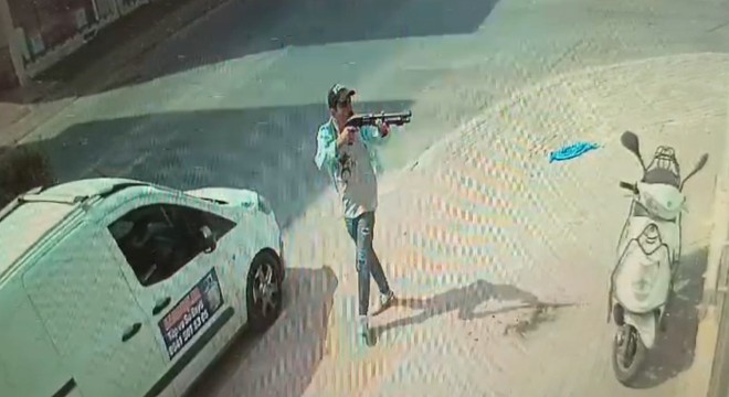 Silahlı saldırı, iş yerinin güvenlik kamerasına yansıdı. Görüntülerde şüphelinin pompalı tüfekle iş yerinin camına ateş ettiği, tutukluk yapması üzerine yere düşen fişekleri toplayıp yeniden ateş ettiği, ardından da park halindeki aracın camına tüfekle vurarak zarar verdiği ve olay yerinden ayrıldığı görüldü.