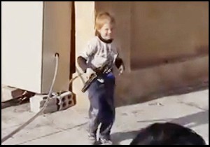 Avrupa asıllı olabileceği düşünülen çocukla birlikte bir çok çocuk daha ellerinde gerçek silahlarla büyükler gibi eğitim alıyor.