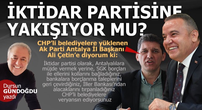 “Antalya ve hizmetlerimizden bihaber olan AKP İl Başkanı Ali Çetin seçim yenilgisinden duyduğu mahcubiyetle bugün bir basın toplantısı düzenlemiş. 31 Mart seçimlerinde 20 belediyenin 18’ini kaybetmenin verdiği başarısızlık nedeniyle istifasını duyuracağını düşünmüştüm. Halkımızın teveccühü ile 'Herkesin Başkanı' olarak 4 dönem Konyaaltı, 2 dönem Büyükşehir Belediye Başkanlığı'nı kazanmış birisiyim. Gerçekleri çarpıtarak beni ve yol arkadaşlarımı karalamaya kimsenin gücü yetmez. Önce Antalyalı vatandaşlarımızın kararına saygı duyacaksınız, yenilgiyi hazmedeceksiniz.”