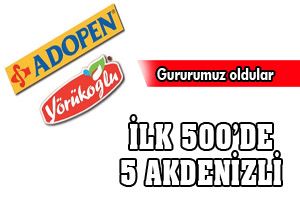 Türkiye'nin 500 Büyük Sanayi Kuruluşu arasına Batı Akdeniz bölgesinden Burdur'dan As Çimento 208'inci, Antalya'dan Adopen 310'uncu, yine Antalya'dan AGT 314'üncü, Isparta'dan Göltaş 408'inci ve Antalya'dan Yörükoğlu ise 433'üncü sırada yerini aldı.