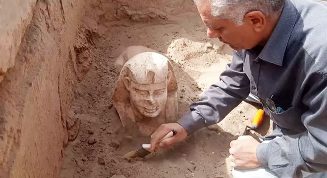 Mısır’da yetkililer, arkeologların ülkenin güneyindeki antik bir tapınakta sfenks benzeri bir heykel ve bir türbe kalıntısı ortaya çıkardığını duyurdu.