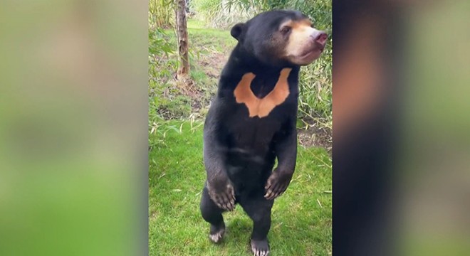 İngiltere’deki bir hayvanat bahçesi, Çin’deki bir ayının insan benzeri davranışlar göstermesi üzerine başlayan ‘ayıların kostüm giymiş insanlar olduğu’ tartışmalarına katıldı.