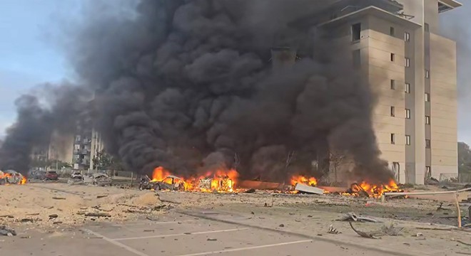İran, sabahın erken saatlerinde İsrail topraklarına yeni füze saldırısı başlattı. Beerşaba kentini hedef alan saldırıda birçok noktaya isabet eden füzeler patlamalara yol açarken, binalardan alevler yükseldiği görüldü.