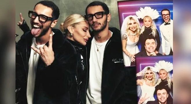 Aşklarını ilan eden çift, menajer Özgür Aras'ın doğum günü partisine gelinlik ve damatlıkla katıldı. Taze aşıkların mutlu halleri yüzlerinden okunuyordu.