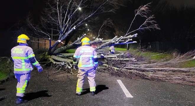 Eowyn Fırtınası nedeniyle İrlanda ve Kuzey İrlanda'da 560 bin ev ve iş yeri elektriksiz kaldı, Dublin Havalimanı'nda 230 uçuş iptal edildi. İrlanda ve Kuzey İrlanda'daki tüm okullarda bugün eğitime ara verilirken İrlanda'da bugün toplu taşıma hizmet vermeyecek. İrlanda hava durumu ajansı tarafından yapılan açıklamada, rüzgarın gece boyunca saatteki hızının 182 kilometreyi bulduğu belirtilerek 80 yılın rekorunun kırıldığı kaydedildi.