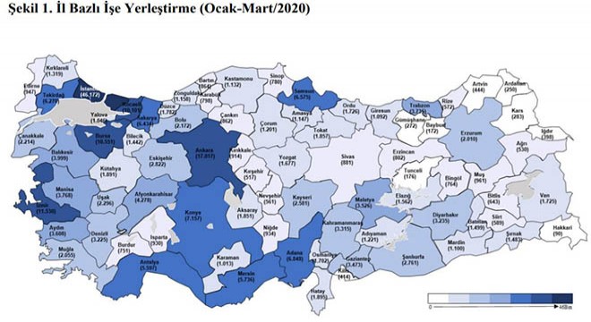 Mart ayında İşkur aracılığıyla yüzde 67.9 ile 50 bin 444’ü erkek, yüzde 32.1 ile de 23 bin 887’si kadın olmak üzere, 74 bin 331 kişi işe yerleştirildi. Ocak-Mart döneminde de 245 bin 681 kişi işe yerleştirildi.