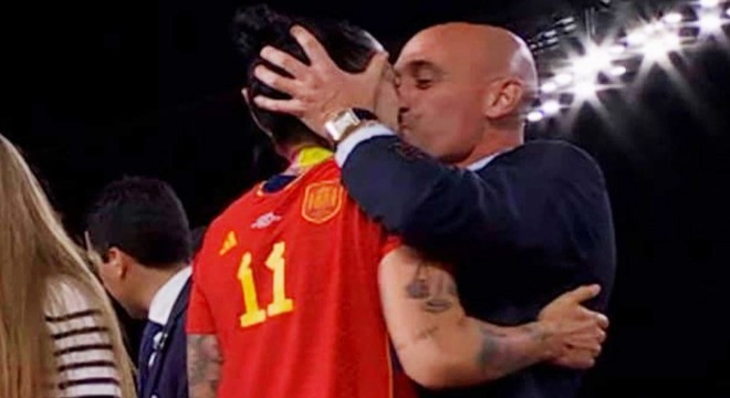 İspanya'nın maçı kazanmasının ardından sevinç gösterisi sırasında şeref tribününden uygunsuz hareketler yapan Rubiales, daha sonra madalya töreninde İspanyol futbolcu Jennifer Hermoso'yu dudağından öpmüştü.