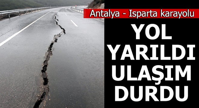 Isparta- Antalya Karayolu'nun 20'nci kilometresindeki Dereboğazı mevkisinde sabah saatlerinde yol ortasında yarıklar olduğu görüldü. Yağış nedeniyle toprak kaymasına bağlı olarak asfalt yolda yarılma meydana geldiği belirtilirken, durumu fark edenler Karayolları ekiplerine haber verdi.