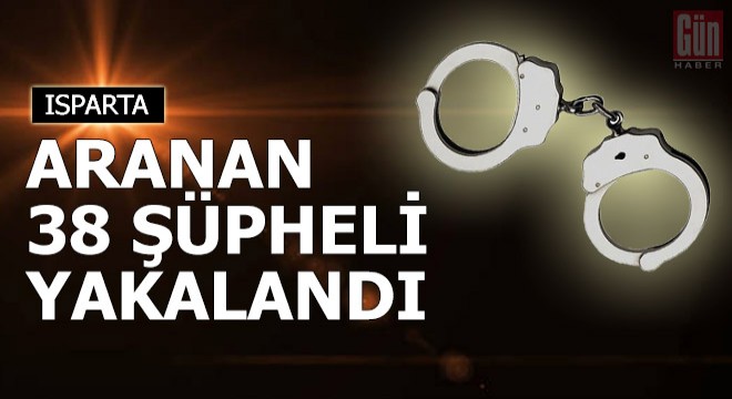 Isparta Emniyet Müdürlüğü Asayiş Şube Müdürlüğü Aranan Şahıslar Büro Amirliği tarafından 25 Kasım- 2 Aralık tarihlerini kapsayan 1 haftalık sürede yürüttükleri operasyonlarda; 'sarkıntılık yapmak suretiyle cinsel saldırı' suçundan aranan K.H., 'suç işlemek suretiyle kurulan örgüte üye olmak', 'alkol ve uyuşturucu madde etkisinde araç kullanmak' suçlarından aranan M.A. ve 'adet gereği açıkta bırakılmış eşya hakkında hırsızlık' suçundan aranan A.T.'nin de aralarında bulunduğu 38 şüpheliyi yakaladı. İşlemleri tamamlanan şüphelilerin adli makamlara sevk edildiği belirtildi.