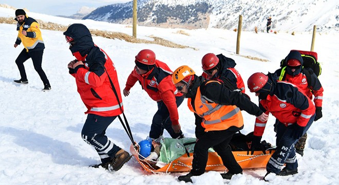 Yangının ardından senaryo gereği Davraz Kayak Merkezi'ne çığ düştüğü ihbarını alan ekipler, bölgeye sevk edildi. Burada jandarmaya ait canlı arama köpeği 'Leo'nun çığ altında kalan kişilerin yerini tespit etmesiyle ekipler tarafından kazazedeler kurtarıldı. Karın altından çıkarılan yaralılar, UMKE ekiplerince paletli ambulanslarla hastanelere sevk edildi. Daha sonra telesiyejde mahsur kalan 2 kişi de AFAD ve JAK ekiplerinin çalışmasıyla bulundukları yerlerden başarıyla kurtarıldı. Tatbikat, kamu kurum ve kuruluşları ekipleri ile sivil toplum kuruluşu gönüllülerinden oluşan 80 kişilik ekiple gerçekleştirildi.