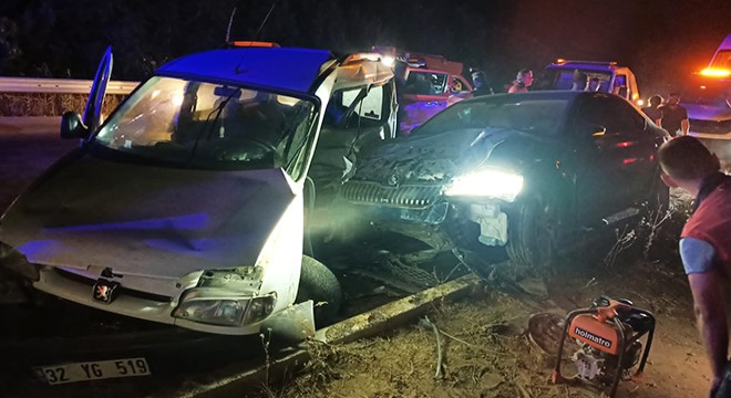 Kaza dün saat 21.00 sıralarında Isparta-Eğirdir karayolunda meydana geldi. M.Z’nin kullandığı otomobil, aynı istikamete giden M.T’nin kullandığı hafif ticari araca arkadan çarptı. Kazada hafif ticari araç sürücüsü M.T., ile yanındaki B.A.K, otomobil sürücüsü M.Z ile beraberindeki S.Z, M.B.Z, ve Z.İ.Z. yaralandı. Sağlık ekipleri yaralıları, Isparta Şehir Hastanesi ve Süleyman Demirel Ünivresitesi Araştırma ve Uygulama Hastanesi’ne götürdü. Yaralılardan M.T.’nin tedavisi devam ediyor, diğerleri ise taburcu oldu.