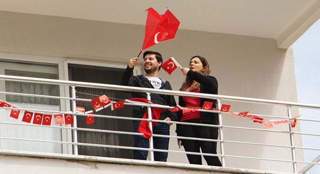 Çünür Mahallesi Eymen Park Evleri'nde bulunan 72 dairelik sitenin sakinleri saat 11.00'de balkonlarına çıkarak saygı duruşunda bulundu ve İstiklal Marşı'nı hep bir ağızdan okudu. 23 Nisan çocuk şarkıları, 10. Yıl Marşı'na eşlik ederek ellerindeki Türk bayraklarıyla coşkulu bir kutlama yapan apartman sakinlerinin coşkusuna çevredeki binalardan da vatandaşlar eşlik etmeye çalıştı.