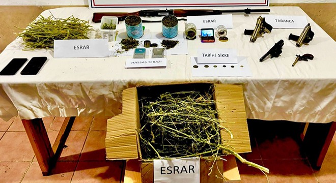 Isparta İl Jandarma Komutanlığı ekipleri tarafından Sütçüler ilçesinde 2 şüphelinin evinde uyuşturucu madde imal ve ticaretini yaptığı bilgisi üzerine operasyon başlatıldı. Yapılan aramalarda 1250 gram kubar esrar, 50 gram kenevir tohumu, 2 hassas terazi, esrar maddesi öğütme aparatı, 4 tabanca, av tüfeği ve 6 sikke ele geçirildi. Olayla ilgili 1 şüpheli hakkında 'uyuşturucu madde imal ve ticareti', 'uyuşturucu madde kullanımı ve bulundurma', '2863 sayılı Kültür ve Tabiat Varlıklarını Koruma Kanununa muhalefet' suçlarından adli işlem başlatıldı.