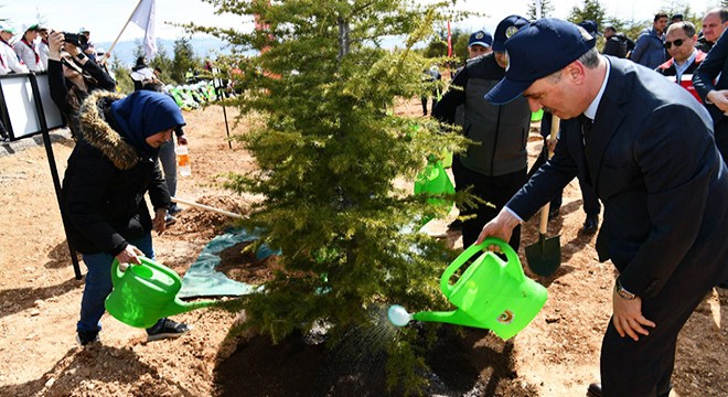 Ardından Vali Baruş; Isparta'da ikamet eden ve 6 Şubat tarihindeki deprem afetinde Adıyaman'da hayatını kaybeden Diş Hekimliği Fakültesi 4. sınıf öğrencisi Şeref Salih Dönmez'in annesi Suna, babası Gürbüz ve kız kardeşi İrem Dönmez'e taziye dileklerini ileterek, ilk fidanı kendileriyle birlikte dikti. Vali Baruş alanda fidan diken çocuklarla da ilgilenerek onlarla fidan dikti, orman ve doğa sevgisi hakkında sohbet etti. Etkinlikte 1 hektar alanda 400 sedir fidanı toprakla buluşturulup can suları verildi.