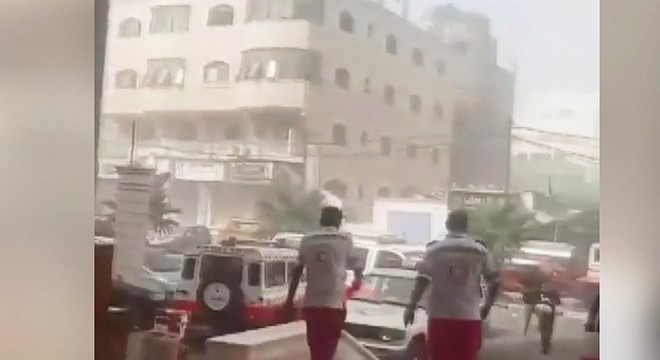 Filistin Kızılayı’ndan yapılan açıklamada, “İsrail, ICRC'den bir heyetin ziyareti sırasında Al Quds hastanesinin yakınlarına hava saldırısı düzenledi. Bu bombardımanlar, ülke içinde yerinden edilmiş siviller ve hastanedeki sağlık personeli arasında korku ve paniğe neden olmuştur” denildi. Görüntülerde, patlama sesinin ardından sağlık görevlilerinin güvenli yerlere koştuğu anlar yer aldı.