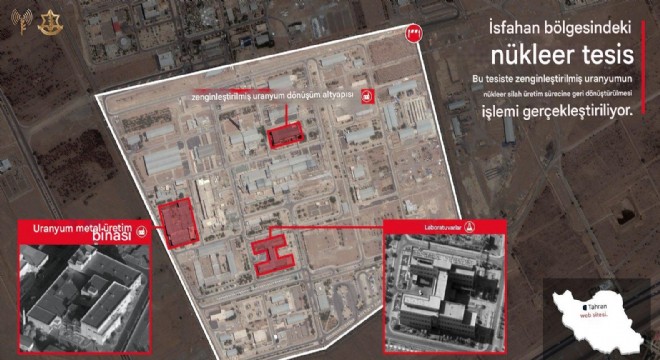 İsrail Ordusu sözcüsü, Arap medya bölümü başkanının sosyal medya hesabından Arapça yaptığı açıklamada, İran'ın İsfahan bölgesindeki bir nükleer tesise hava saldırısı düzenlediklerini bildirdi. Yapılan duyuruda, tesiste 'nükleer silah üretim sürecinde, uranyum zenginleştirmeden sonraki aşama olan zenginleştirilmiş uranyumun geri dönüştürülmesi işlemi' gerçekleştirildiği belirtildi. Ayrıca, saldırı sırasında uranyum metal üretim binası, zenginleştirilmiş uranyum dönüşüm altyapısı ve laboratuvarların imha edildiği ifade edildi. (DHA)