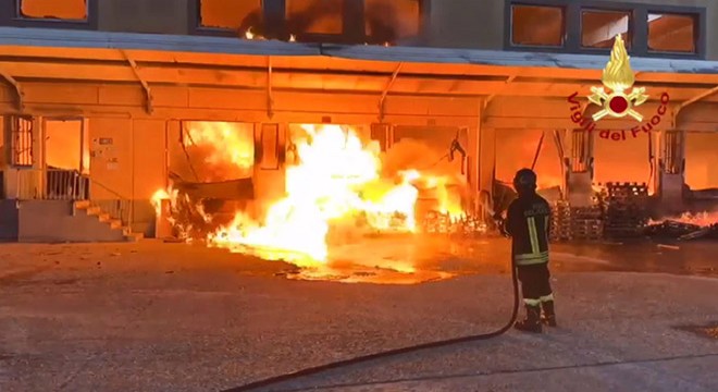 Yangın, Milano kentinin doğusundaki Trucazzano bölgesinde 16.40 sıralarında çıktı. İtalyan itfaiyesi Vigili del Fuoco’dan yapılan açıklamada, “Monza Brianza ve Bergamo'dan gelen takviye itfaiye ekipleri Milano ilindeki Truccazzano'da bir nakliye şirketinde çıkan yangınla meşgul. Dokuz ekip, yangının komşu şirketlere yayılmasını önlemek için çalışıyor. Ayrıca havadan İHA’larla yangına ilişkin keşif yapılıyor” denildi.